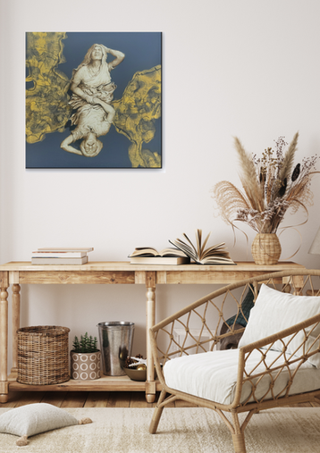 Born in 1980 in Shrimadhopur (Sikar), Rajasthan, Gourishankar Soni received his diploma in Drawing and Painting from the Rajasthan School of Art, Jaipur, in 2000, and later completed his M.F.A. in Painting from the Faculty of Fine Arts, Rajasthan University, in 2003.  Rajasthan's royal heritage greatly influence his emotions, as he has been fascinated by iconic Indian architecture since childhood. The unique shapes of windows and doors from various historical buildings, such as Hawa Mahal, Shekhawati Havelis, and palaces, have captivated his imagination. Gourishankar transforms these captivating doors and windows into square, rectangular, and circular openings in his artworks—openings that connect and communicate with the world outside, much like the windows from his favorite buildings.  Gourishankar creates a monochromatic background for his human figure subjects. These backgrounds are then textured with a variety of symbols, characters, and signs influenced by different cultural elements. His subjects—human figures in various postures and everyday objects such as chairs, bells, musical instruments, etc.—are depicted peeping out of the windows in contrasting tones, adding a pop of color to the monochromatic settings.  The artist has showcased his art at numerous group and solo exhibitions in various Indian and international galleries, including the prestigious Lalit Kala Academy at Jawahar Kala Kendra, Jaipur; NCPA, Mumbai; Rang Malhaar Art Festival, Jaipur, etc. He has also received awards from the prestigious Lalit Kala Academy, All India Fine Art and Craft Society, and Rajasthan Lalit Kala Academy.