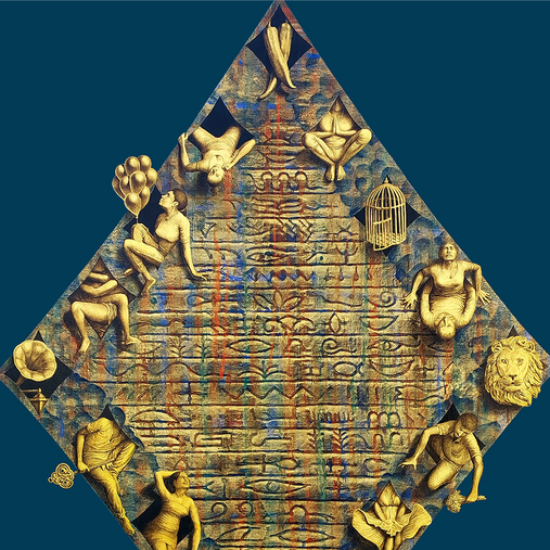 Born in 1980 in Shrimadhopur (Sikar), Rajasthan, Gourishankar Soni received his diploma in Drawing and Painting from the Rajasthan School of Art, Jaipur, in 2000, and later completed his M.F.A. in Painting from the Faculty of Fine Arts, Rajasthan University, in 2003.  Rajasthan's royal heritage greatly influence his emotions, as he has been fascinated by iconic Indian architecture since childhood. The unique shapes of windows and doors from various historical buildings, such as Hawa Mahal, Shekhawati Havelis, and palaces, have captivated his imagination. Gourishankar transforms these captivating doors and windows into square, rectangular, and circular openings in his artworks—openings that connect and communicate with the world outside, much like the windows from his favorite buildings.  Gourishankar creates a monochromatic background for his human figure subjects. These backgrounds are then textured with a variety of symbols, characters, and signs influenced by different cultural elements. His subjects—human figures in various postures and everyday objects such as chairs, bells, musical instruments, etc.—are depicted peeping out of the windows in contrasting tones, adding a pop of color to the monochromatic settings.  The artist has showcased his art at numerous group and solo exhibitions in various Indian and international galleries, including the prestigious Lalit Kala Academy at Jawahar Kala Kendra, Jaipur; NCPA, Mumbai; Rang Malhaar Art Festival, Jaipur, etc. He has also received awards from the prestigious Lalit Kala Academy, All India Fine Art and Craft Society, and Rajasthan Lalit Kala Academy.