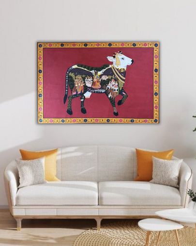 Pichwai, a traditional art form that emerged over 400 years ago in Nathdwara, Rajasthan, is known for its intricate and visually captivating depictions of Lord Krishna’s life. Painted on cloth, these artworks often illustrate Shrinathji, a form of Krishna as a seven-year-old child, along with Radha, gopis, cows, and lotuses. Pichwai paintings are deeply tied to festivals and celebrations such as Sharad Purnima, Raas Leela, Annakoot, Janmashtami, Gopashtami, Diwali, and Holi. The name Pichwai comes from the words pichh (back) and wai (textile hanging), as these paintings were originally designed to adorn the temple walls of Shrinathji in Nathdwara. Created by the artisans of the Pushti Marg sect, founded by Shri Vallabhacharya in the 16th century, these artworks served as seasonal backdrops for temple rituals, marking important events in Krishna’s life. Over time, their visual appeal and spiritual significance led to their presence in private collections and homes. A unique aspect of Pichwai art is its use of natural colors, derived from minerals, plants, flowers, and even gold and silver leaf. These pigments not only add richness and depth to the paintings but also ensure their longevity and sustainability. The vibrant blues, deep reds, and shimmering golds carry symbolic meanings, enhancing the spiritual and aesthetic essence of each piece. Over time, Pichwai paintings have found a place in the homes of art connoisseurs, appreciated for their intricate artistry and spiritual significance. However, like several other traditional Indian art forms, Pichwai is at risk of fading into obscurity and requires recognition and revival to preserve its rich heritage.