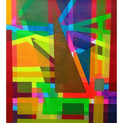 Rafiq, an abstract artist, explores layers, lines, and new forms to create captivating artwork. His compositions, punctuated by colorful collages and fine columns, evoke fragmented childhood memories and the resonances of a lost village. Without romanticizing the past or succumbing to nostalgia, Rafiq's art confronts the crisis of dislocation and exile. It captures the collision between his serene village roots seeking to find their place in a violent cityscape. Village and city, tradition and modernity, collide in his dynamically vibrant-hued artwork, where sketches metamorphose into smoldering shades, reflecting his journey of self-discovery and transformation.